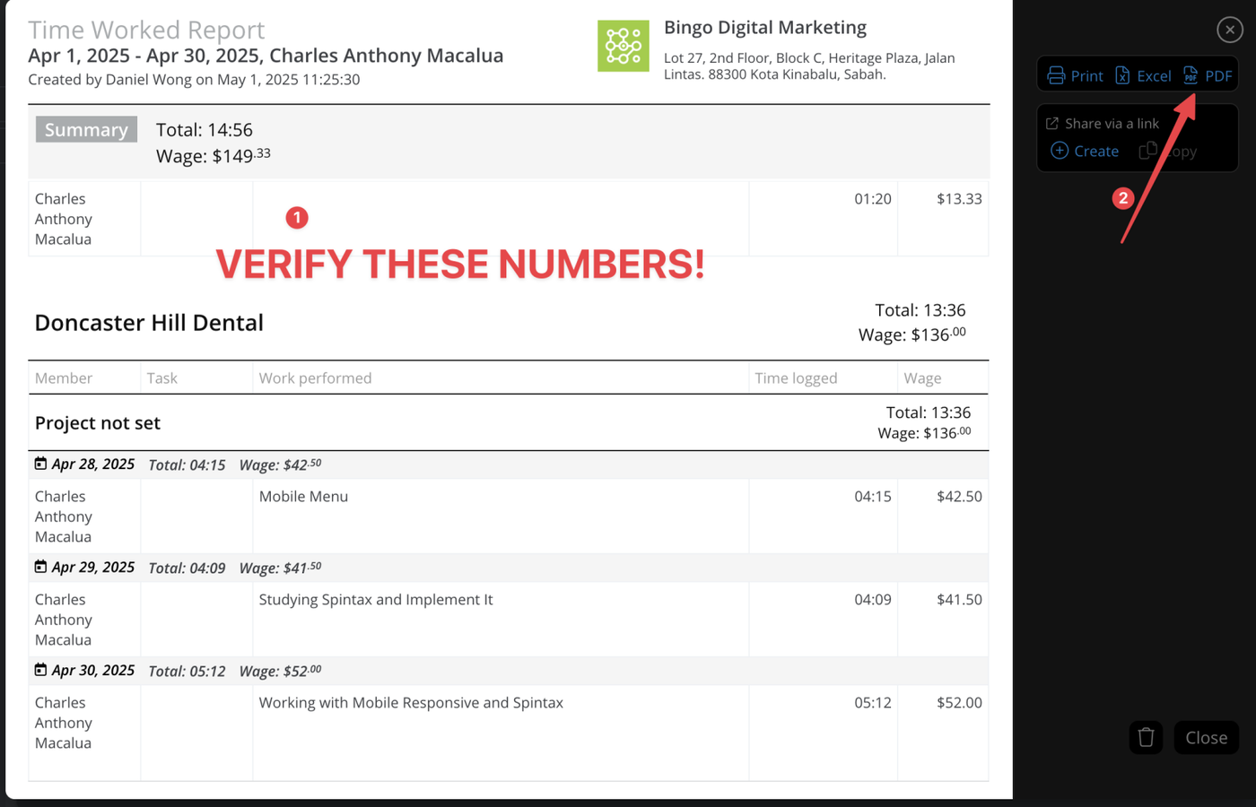 Send the PDF reports to Bryan via Slack (https://bingodigitalmarketing.slack.com/archives/DC8K24H43)