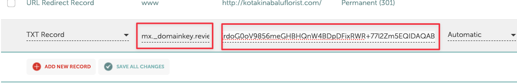 Copy the values from DMARC, and paste it at Namecheap, same like above.